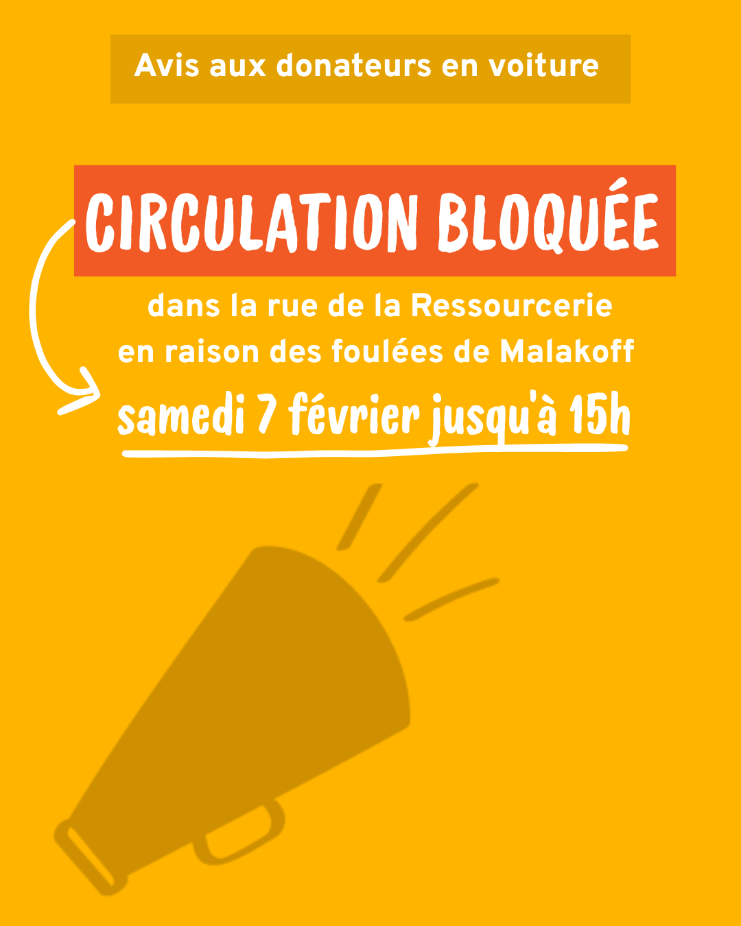 Pas de dons le vendredi. Nous ne disposons pas de service d’enlèvement.